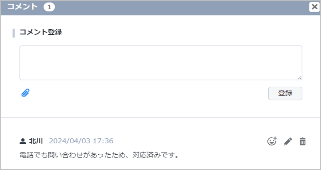 電話で対応した内容と、対応が完了した旨をコメントに記載し
