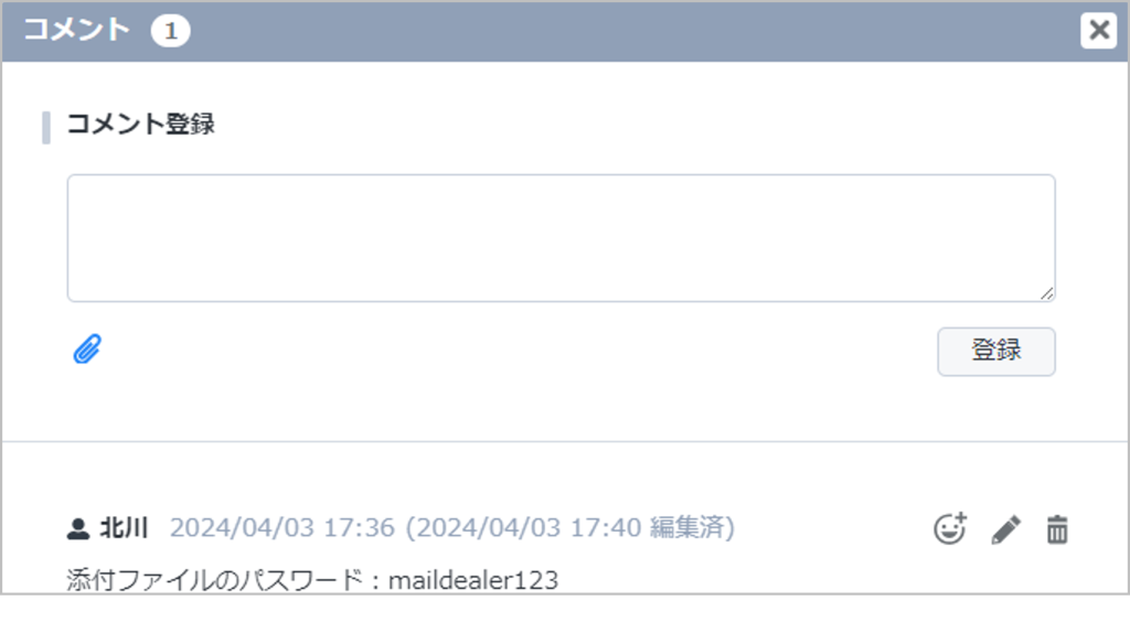 添付ファイルのついているメールのコメントにパスワードを記載。