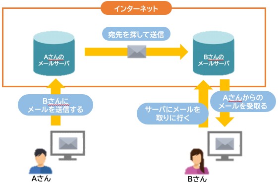 メールのやり取りを行う際は、下記の図のような流れとなり
