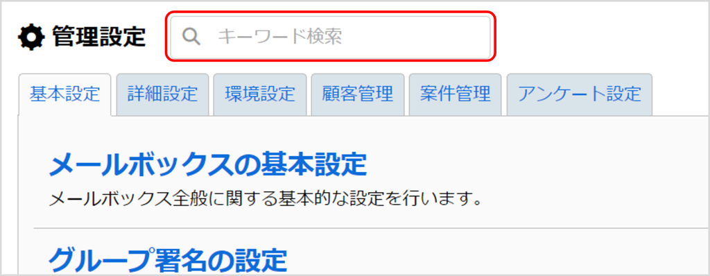 管理設定配下の設定を検索できます。