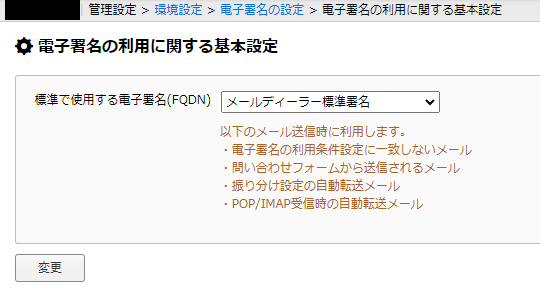 関する基本設定」を、「メールディーラー標準署名」を使用する設定に変更します。
