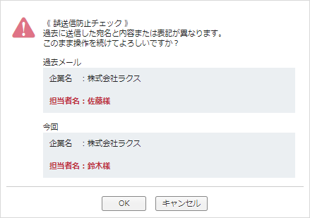 <宛先が過去の送信メールと異なる場合>