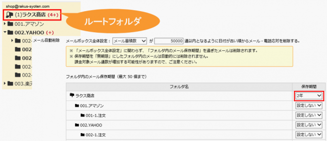 ルートフォルダ(一番上位のフォルダ)の自動削除設定ができるようになります。