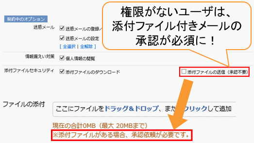 添付ファイル付きのメールを承認必須にする運用ができます。