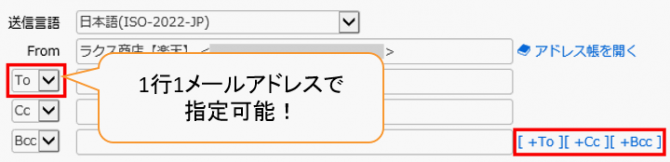 送信先のメールアドレスを1行1アドレス形式で指定できるようになります。