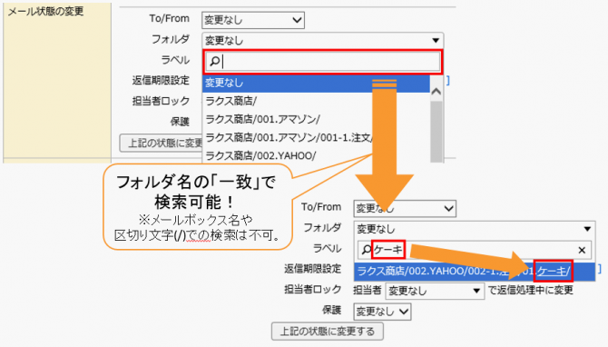 フォルダを選択する際、フォルダ名で検索できるようになります。