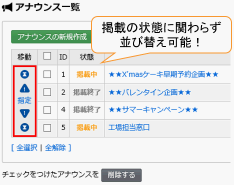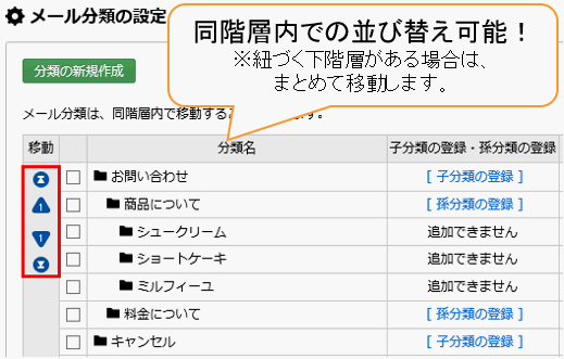 | 分類の登録件数が5,000件を越える場合は並び替え機能は利用できません。 |