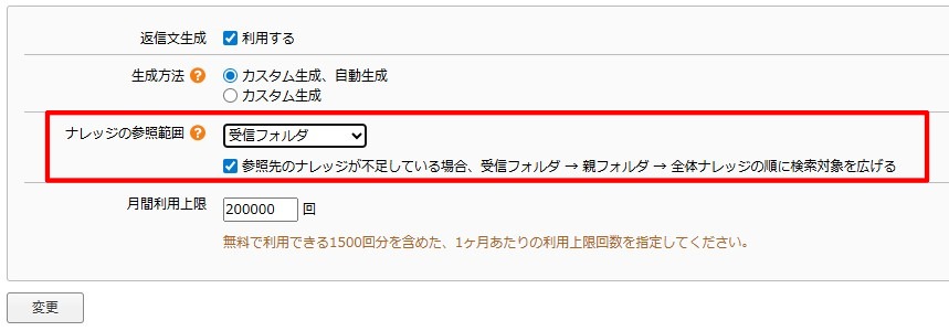 ※すでに返信文自動生成機能を利用している場合は、設定変更を行った日の夜間メンテナンスで